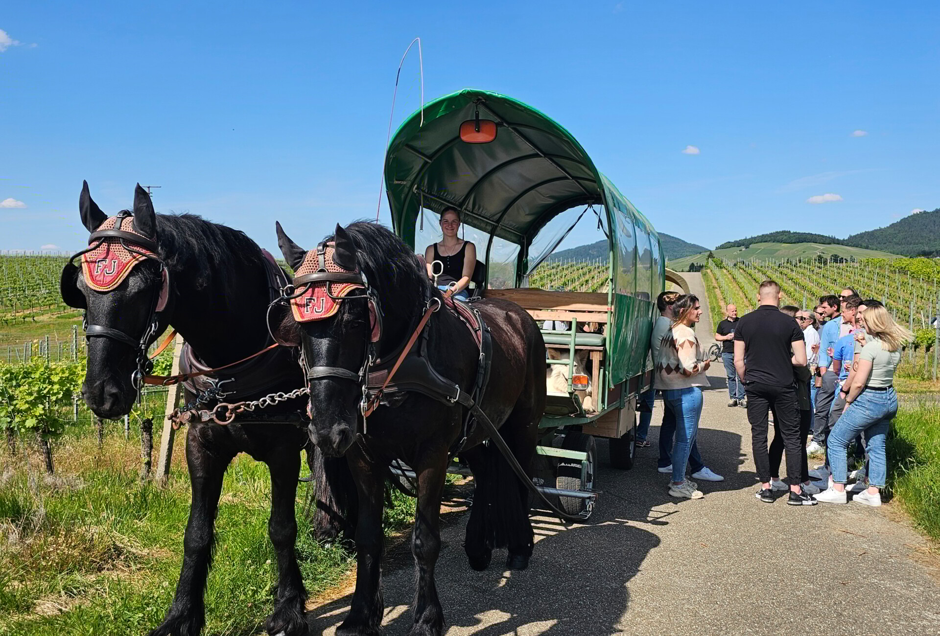 Planwagen- und Kutschfahrten sind ein ganz besonderes Erlebnis. Genießen Sie mit uns dieses ursprüngliche Gefühl auf einer Fahrt durch unsere Reben. Sie erfreuen sich an der Natur und entspannen bei einem Glas unserer Weinspezialitäten. Wir bieten Ihnen von Mai bis Oktober Weinbergtouren mit dem Planwagen an. Bitte reservieren Sie rechtzeitig ihren Termin!