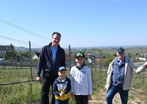Familienzusammenhalt, die Tradition erhalten und Respekt vor dem Erschaffenen seiner Eltern ist Jochen Hubers Devise. Auch seine beiden Jungs Jonas und Luca mit ihren 6 und 10 Jahren helfen schon mit großer Begeisterung in den Reben mit.